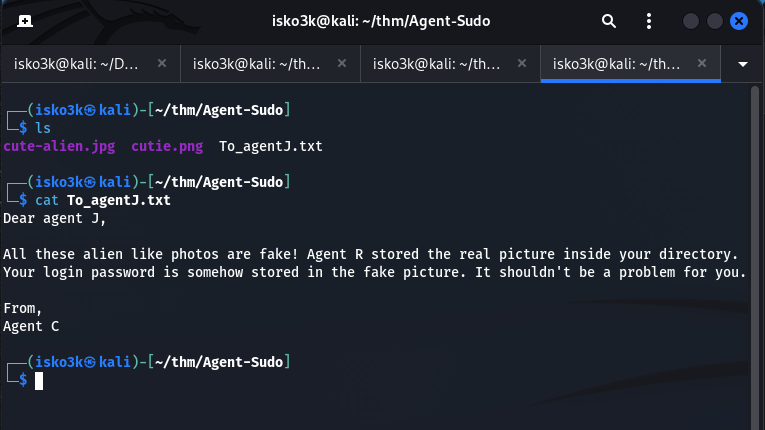To_agentJ.txt— A message to Agent Jcute-alien.jpg— A suspicious image filecutie.png— Another suspicious image file