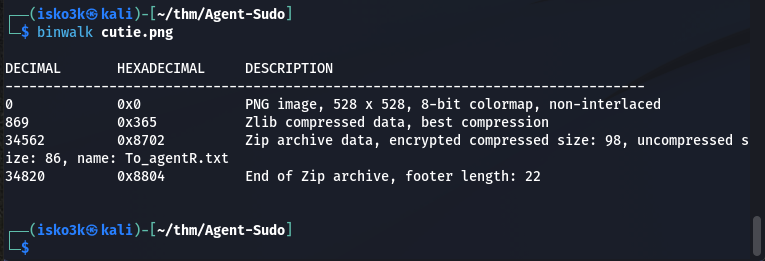 Figure 5.2: Binwalk confirms an encrypted ZIP archive (8702.zip) embedded in the PNG