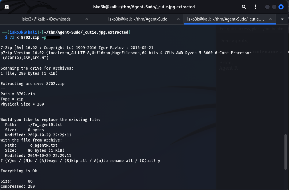 Figure 5.5: Extracting To_agentR.txt from the password-protected ZIP