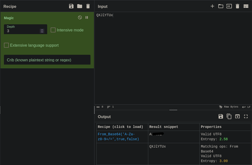 That string QXJlYTUx looks like Base64. Let's decode it with CyberChef.