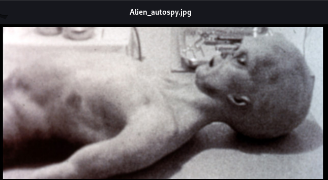 A reverse image search confirms this is the famous Roswell alien autopsy photo. The "truth" the room description mentioned. Now for the real objective — root.