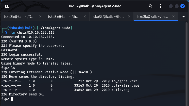 Inside chris's FTP directory, we find three files: