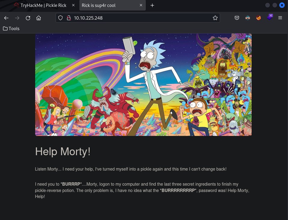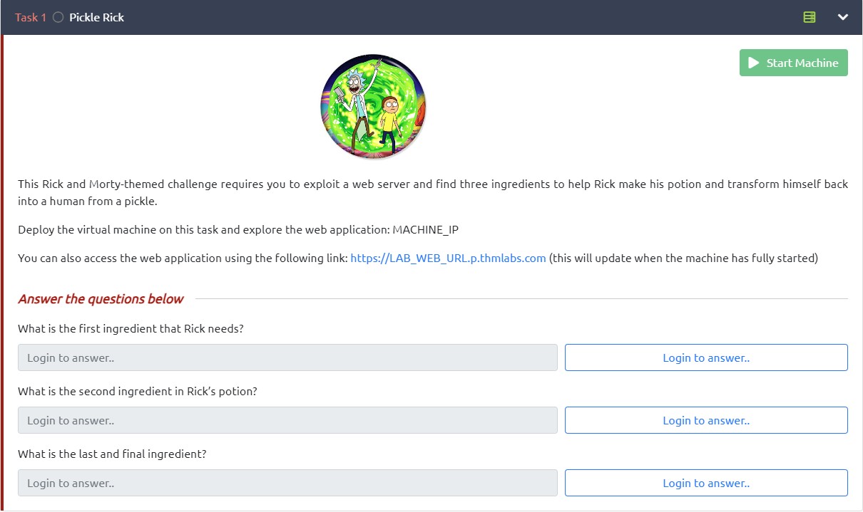 Figure 1.1: The TryHackMe challenge description — Rick needs our help!
