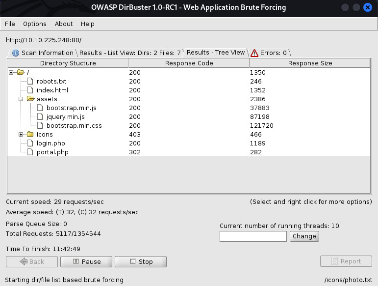 Figure 3.3: Directory enumeration revealing robots.txt and login.php