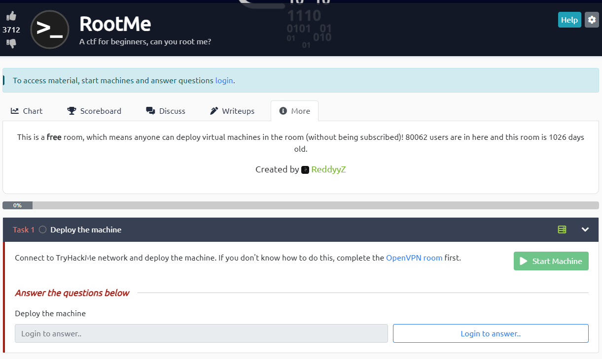 Figure 1.1: The TryHackMe RootMe room — a beginner CTF with a clear objective