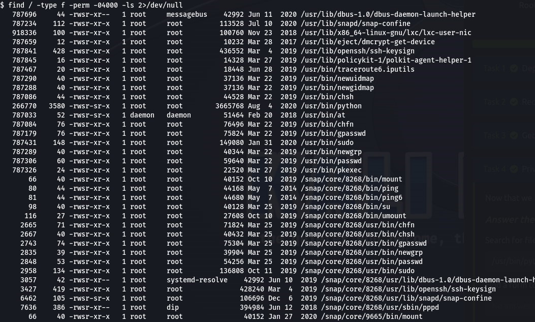 Figure 5.1: Task 4 — Find the weird SUID file and escalate to root