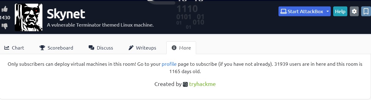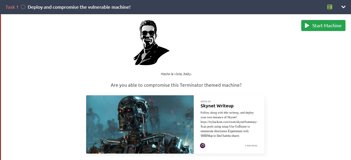 Figure 1.1: The TryHackMe Skynet room — a vulnerable Terminator-themed Linux machine.
