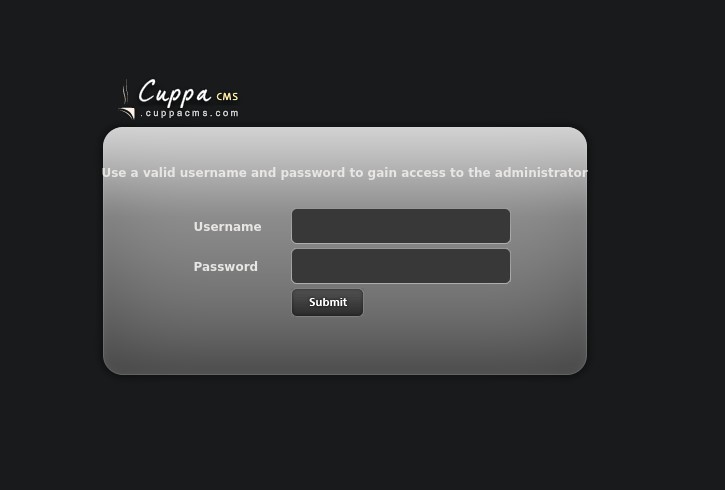 Figure 3.1: CuppaCMS login page. Instead of brute forcing, we check for public exploits.