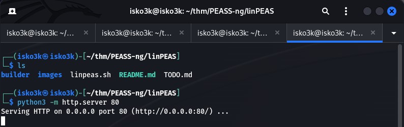 Figure 4.1: Hosting linPEAS for transfer to the target.
