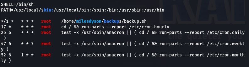 Figure 4.3: The crontab reveals a backup script executing as root every sixty seconds.