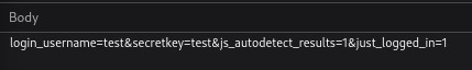 Before launching Hydra, we need the exact POST parameters. Inspecting the login request through the browser's network tab reveals the request body format: login_username, secretkey, and the failure string.